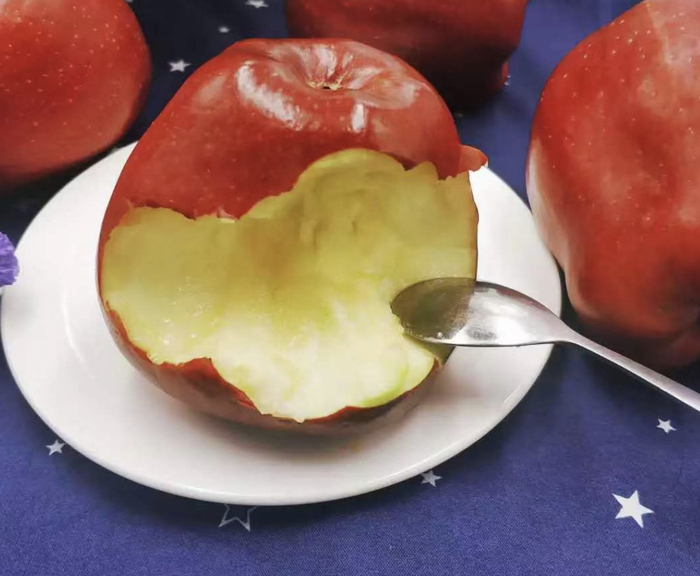 花牛苹果是国家地理标志产品,肉细致密,汁多嫩脆且清新爽口。刘峰告诉记者,花牛苹果上市的时候,老人和小孩买的比较多,因为果肉细密,带着一些沙沙的颗粒感,都可以用勺子挖着吃,也被称作“老奶奶苹果”,特别适合牙口不好的老人和小孩吃。