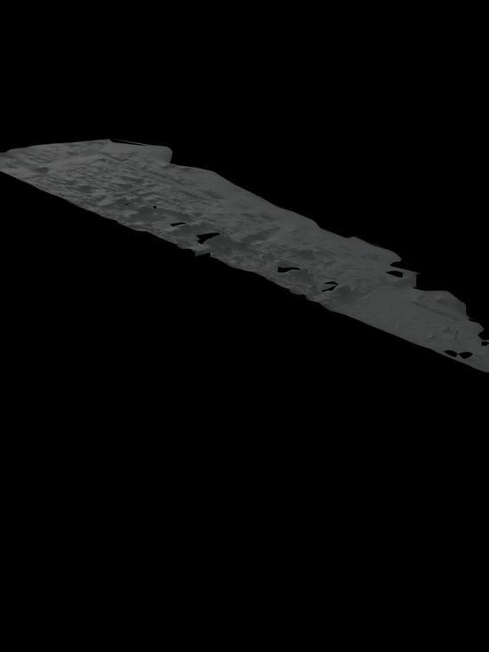 在点灭表层贴图之后,模型瞬间显露出丰富非常的数字肌理,如此按照失真数据一路搭建下去,我发现那些数字模型“碎片”仿佛来自一座怪异的巨构建筑。敲击鼠标就能改变模型的所有变量,我希望它们看起来是均质的自由的,这样才能匹配人类的幻想,它们可能深藏在地下某失重力场里,或是平行空间的重叠。