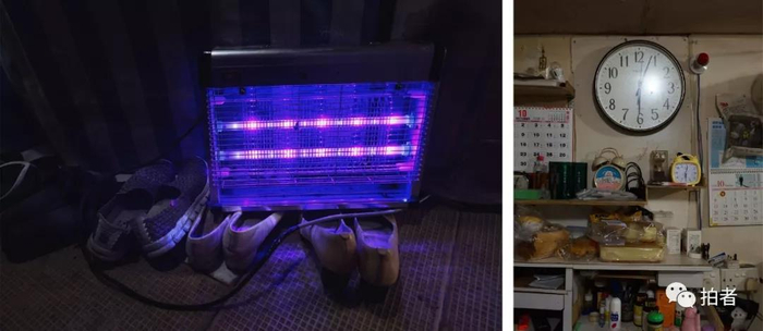 △ 左图:寮屋区蚊子多,小朱家的灭蚊灯不时发出“噼噼啪啪”的响声。
