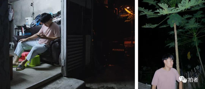 △ 左图:因为屋内手机信号不好,王凯习惯倚在门口玩手机。