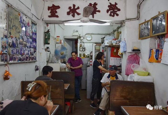 村子的主干道上,曾经商铺林立的茶果岭大街大部分店铺都已经关门,留存下来的近60年历史的荣华冰室成了茶果岭村风雨岁月的“见证者”。冰室的前身是一座教堂,手写的餐牌、怀旧的海报、每侧勉强坐得下两人的实木椅子,踏入其中,仿佛走进了“花样年华”的电影世界。