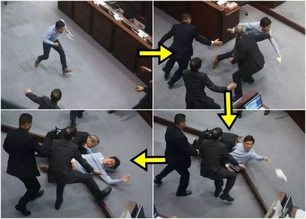 很难想象,这是10月17日发生在香港立法会的一幕,画面中上蹿下跳的男子便是现时香港立法会议员区诺轩。