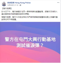 据港媒此前报道,对于暴徒所谓的屯门28日出现“不明气体”的刺鼻气味是警方所为,警方澄清表示,28日日间没有在屯门使用过催泪气体或如网上流传所讲试用任何不明气体。环保署则表示,28日午间转吹西北风,东涌、元朗、屯门等区的污染物浓度较平常水平高。