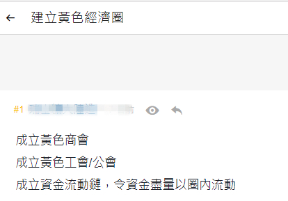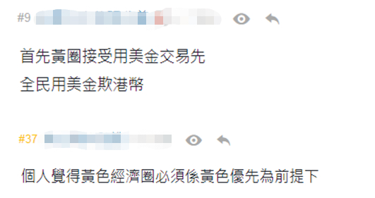 有人则提出:“黄色经济圈必须是黄色优先为前提”、“黄圈要接受使用美金交易,欺港币”↓