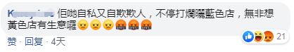 有网友表示:他们自私又自欺欺人,不停打烂“蓝店”,无非想“黄店”有生意;↓