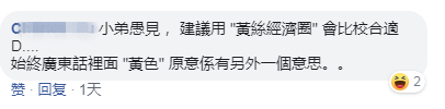也有人意识到似乎哪里不对劲,称建议改成“黄丝经济圈”,因为广东话里的“黄色”有另外一个意思↓