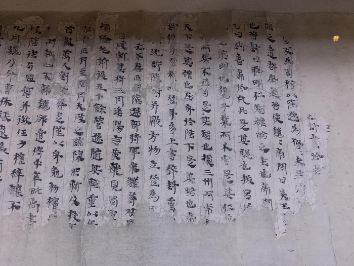 展览中展出的一幅《三国志·吴书·孙权传》写本残卷,出土于吐鲁番鄯善县安乐古城南佛塔。在陈寿成书之后到西晋灭亡(315年)之前的短短二十年内就已传入新疆,系现存最早的《三国志》实物。