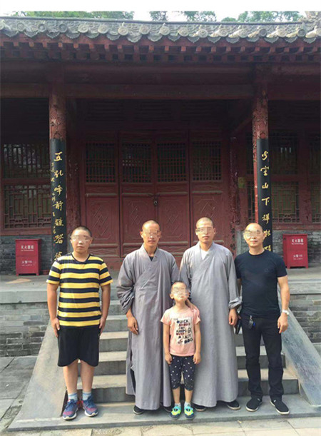 2017年8月14日,程昊兄弟俩拜释延洹为师,左二为释延洹,左三为见证人释延弨。受访者供图