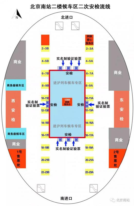 根据安排,北京南站候车区域的6-11、12-17号检票口之间的通道临时封闭,每次进入进沪列车候车专区时,均需通过二次安检。北京南站提示,请旅客提前准备好车票和有效身份证件接受安全检查进站乘车。二次安检期间,请旅客提前1小时到达车站安检候车,以免耽误行程。