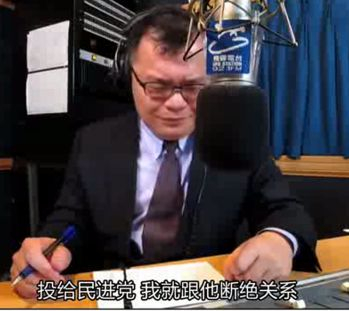 随后他便说出这句:“不管是谁,不准投给民进党,谁投民进党我就和谁断绝关系!”