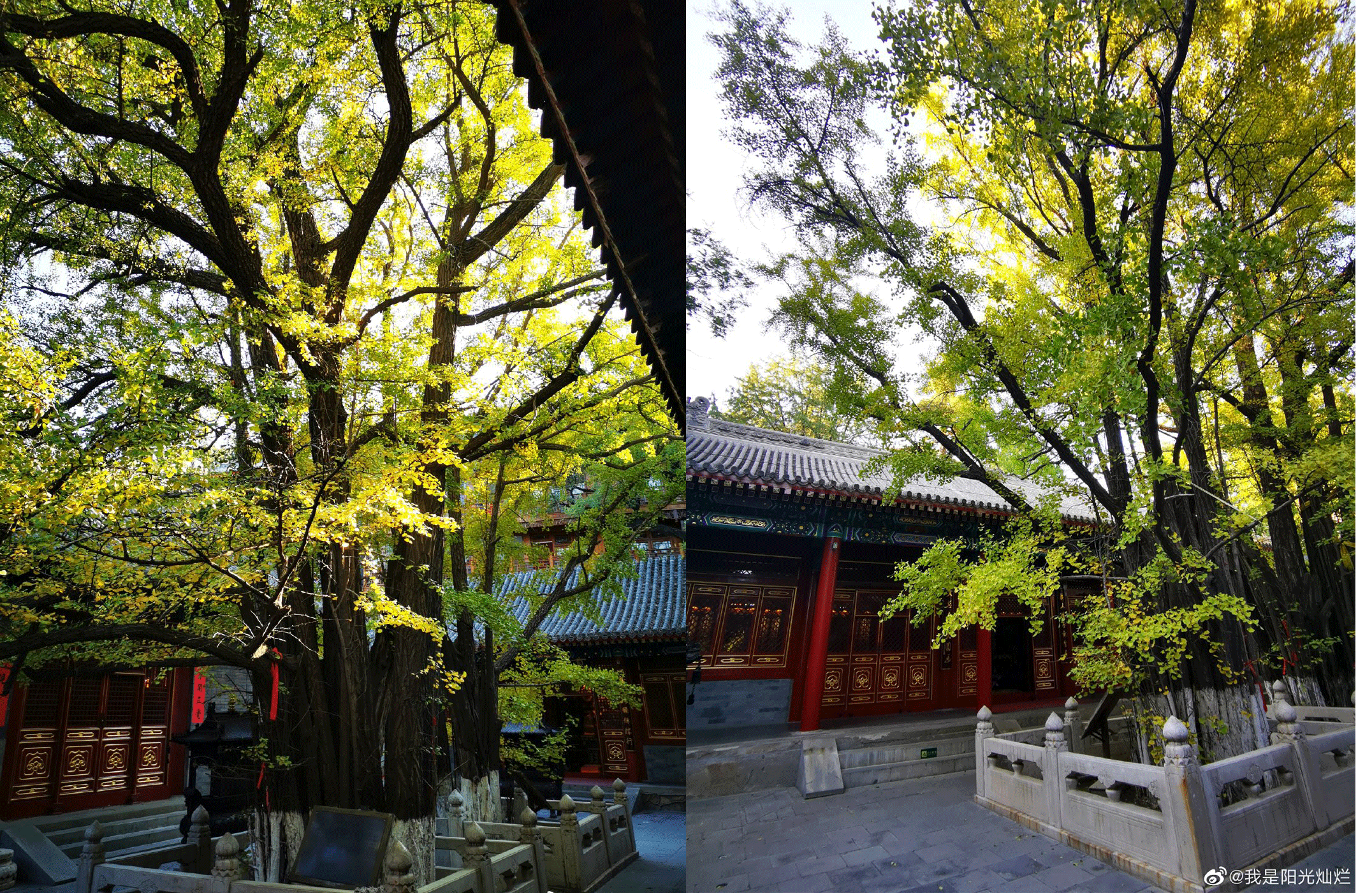 10月底的八大处银杏。 图/微博用户@我是阳光灿烂