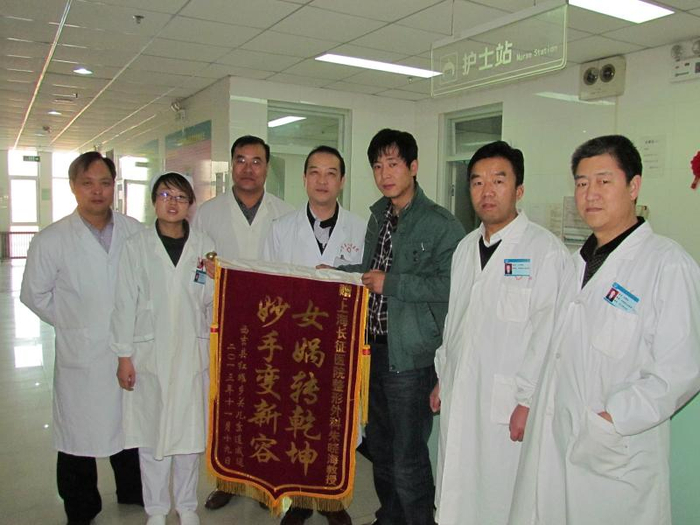 郭永飞跑前忙后,最终到固原中心血站协调要来了600ml红细胞悬液,又到固原市医院买了来深静脉穿刺导管,反复验证植入物器械的数目和规格,并从上海空运了必须的手术器械,冒着风险成功为患者进行了手术。病愈出院时,病人与家属将一面锦旗送到郭永飞手中,激动地说:“我们一家与长征医院有缘,解放军医生是我们一家的救命恩人。”
