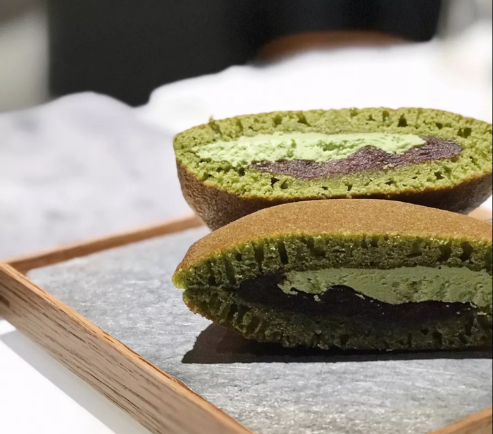 很多人在这里点铜锣烧后,看到实物的第一反应是“这个和哆啦A梦吃的不一样啊”!和常见的圆形铜锣烧相比,这里的方形铜锣烧确实会让人产生疑惑感。但是好在味道不错,馅料是传统的抹茶、红豆和奶油的组合,奶油很细腻,抹茶粉分量十足,让很多觉得铜锣烧偏甜的人也能接受,是一道不错的饭后甜点。当然,也有很多铜锣烧的忠粉看到方形的样子就不能接受,导致评价两极分化严重。