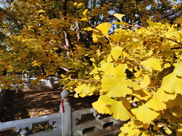 紫竹院公园行宫院内两株古银杏亦树亦林,已呈金黄色,在四周古建筑群落的环绕下格外醒目。陶然亭、玉渊潭公园的银杏大道也将进入最佳观赏期。