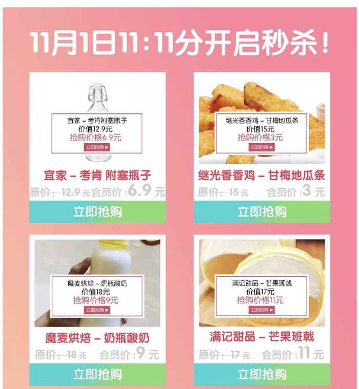 此外,11月1日至11月8日期间,荟聚还开启了每天11:11双11特供线上秒杀。OMEY188元面霜抢购价9.9元,火炉火双人套餐五折,将太无二68元寿司卷只需11.11元,原价168元的欢唱券58元到手……万件大牌抢购,每天不重样!