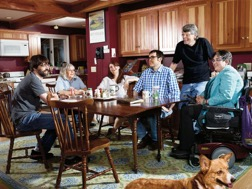 斯蒂芬·金夫妇和三个孩子都是小说家,从左到右: 乔、塔碧莎、欧文夫妇、斯蒂芬、娜欧米,还有乔的狗麦克墨屈。