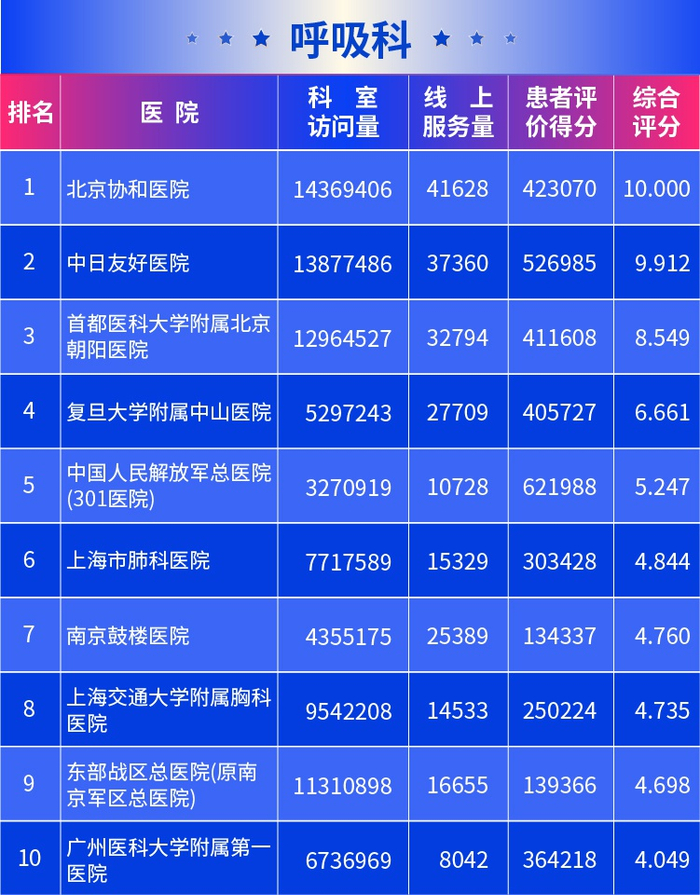 医院互联网影响力排行榜发布 北京协和医院满意度最高