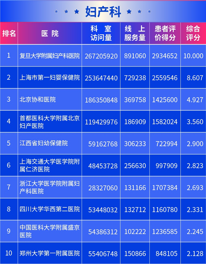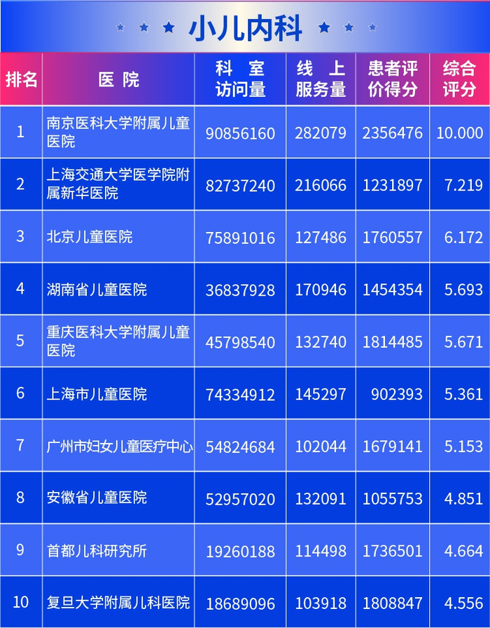 11月4日,中国社科院健康业发展研究中心、银川互联网+医疗健康协会等共同发布2019全国医院互联网影响力研究结果,29个患者最信赖的科室排名同步公布,这也是该榜单连续第4年发布。该研究覆盖全国9852家公立医院,分析了5700万名患者的在线问诊记录和3.1亿次医患交流内容等。