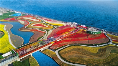 今年春天的新湖郁金香花博会上,30多个品种、120万株郁金香同时在春日的阳光下绽放,像一幅五彩斑斓的油画,与熠熠闪光的海面交相辉映,约70万游客从上海、苏杭而来,参加这场花海的盛宴。