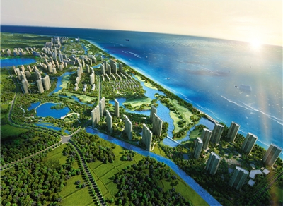 江苏启东正在成为上海的下一个“后花园”。图为新湖·海上明珠鸟瞰效果图。