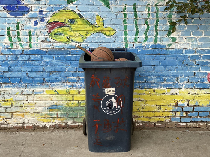 废旧垃圾桶被当成了篮球桶。新京报记者 王巍 摄