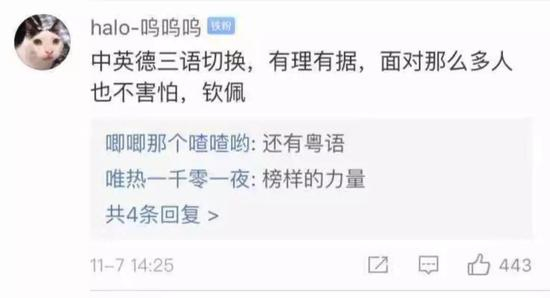 还有网友表示:“一边是三语切换逻辑强,一边是唱歌大叫很尴尬。”