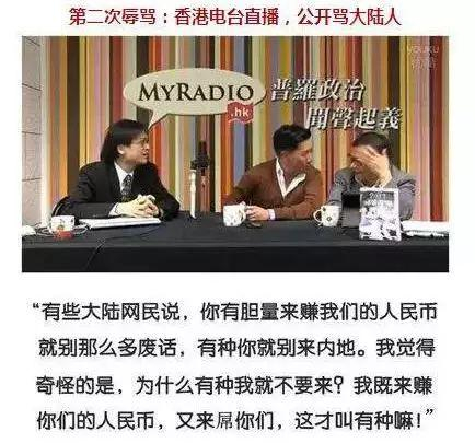 他不屑“大陆”,有段香港媒体的视频,一名观众用普通话提问被他指责:“这里是香港,你干嘛说普通话?”