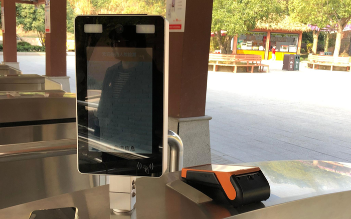 11月5日,杭州野生动物世界入口闸机处的人脸识别机器。新京报记者 梁静怡 摄
