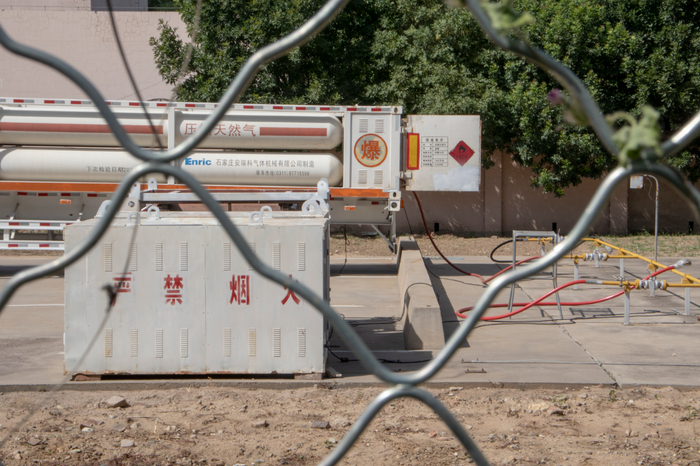天然气压缩罐放置在小区空地上。新京报记者 周博华 摄
