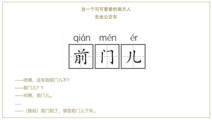 当然,城门的名字说错顶多是会被看出是外地人,若是学“儿化”没学到家,把面粉叫成“白面儿”,要让热心群众听到了,弄不好就会被误会涉毒。