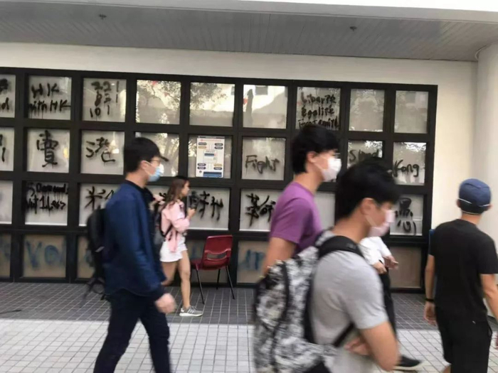 今天,周同学的去世点燃了废青们的情绪,港科大内部的各种设施遭到不同程度的破坏。