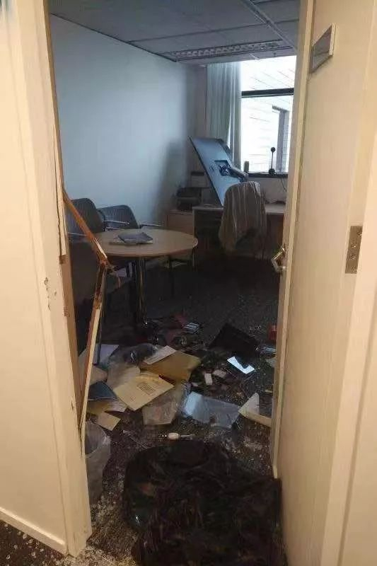 今天一系列打砸事件中,这位教授的办公室就成了这样。