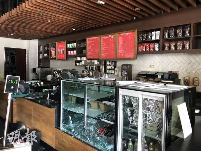 凡是废青们认为是中资或者有中资成分的,都会被打砸。中国银行(香港)在校园开设的网点已经被打烂了,里面的水管破了,网点被淹。