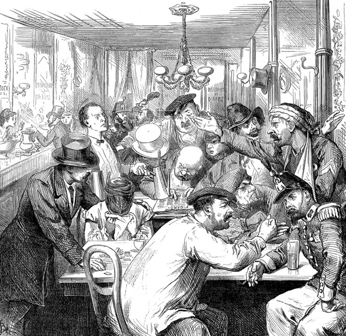 1870年,人们在巴黎的咖啡馆中讨论。