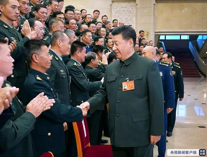 新闻画面显示,南部、北部、东部、西部和中部战区的司令员、政委,以及陆军、空军、海军、火箭军、战略支援部队以及武警部队的首长均在现场。