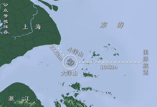 大小洋山虽然距离南汇芦潮港27.5公里(需要建设长距离跨海大桥连接陆地),但它同时距离国际航线仅有104公里,是离上海最近的具备15米以上水深的合理港址。