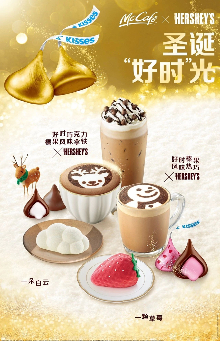 麦当劳的麦咖啡与好时的联名新品圣诞特饮也甜蜜上线。蓝莓馅的“一朵白云”、草莓慕斯加上草莓果肉的“一颗草莓”,两款甜品的可爱和美貌简直不忍心下嘴。好时巧克力榛果风味拿铁和好时榛果风味热巧,简直是集合了冬天最诱人的味道,喝一口细品香暖丝滑、馥郁醇香,然后感叹“冬天真好啊!”
