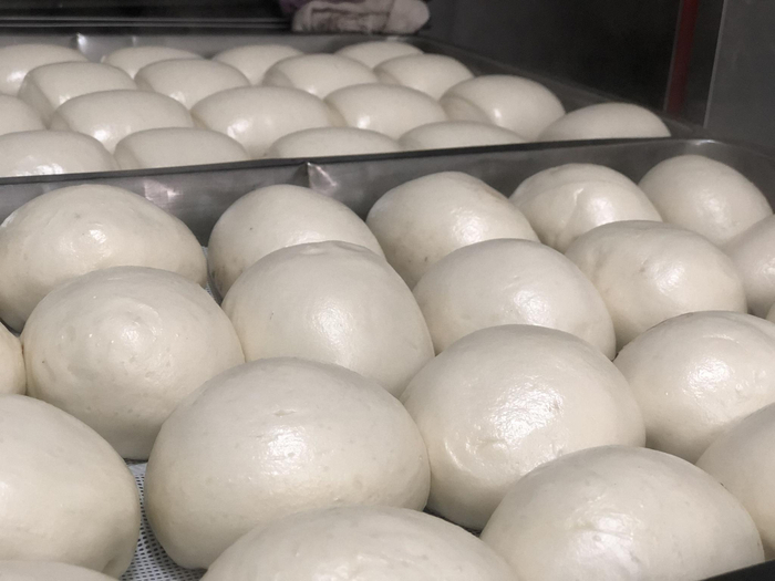 馒头成形后,需要经历20来分钟的醒面,20多分钟的热锅上气儿,整整约50分钟,才会被端进锅里。在生与熟相互转换的30分钟里,操作间的味道也由满屋的生面味,变为满满的馒头香。尽管现在的北京还不算太冷,可操作间的玻璃上还是会随着这腾腾冒出的热气而凝成雾蒙蒙的一片,猛地一走入,像是回到了遥远记忆中,自己急匆匆闯进的姥姥的厨房,迫不及待地一边轻吹着指尖,一边想要从刚出锅的馒头上,掰下热乎乎的一口塞进嘴里。
