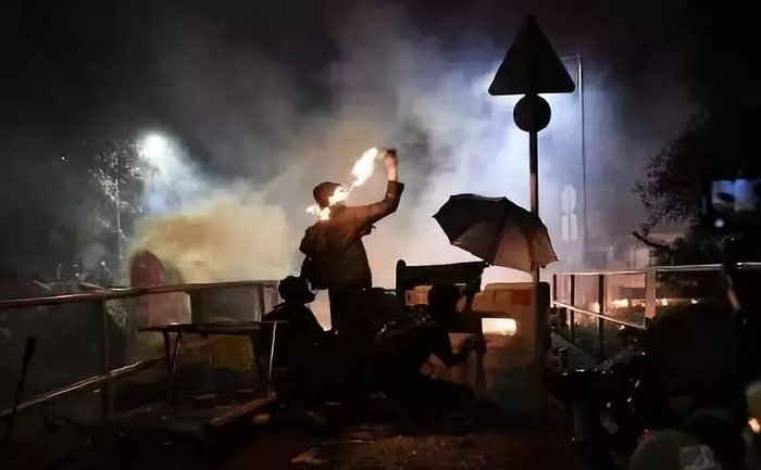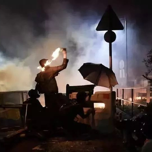 你看那些暴徒,像不像一支支燃烧瓶?有人用火苗将他们点燃并抛向空中……而年轻的暴徒们,“骄傲”地燃烧着自己,尔后猛然坠地,将体内“燃料”变为一片更大的火苗,肆虐燃烧着香港的每一寸土地。