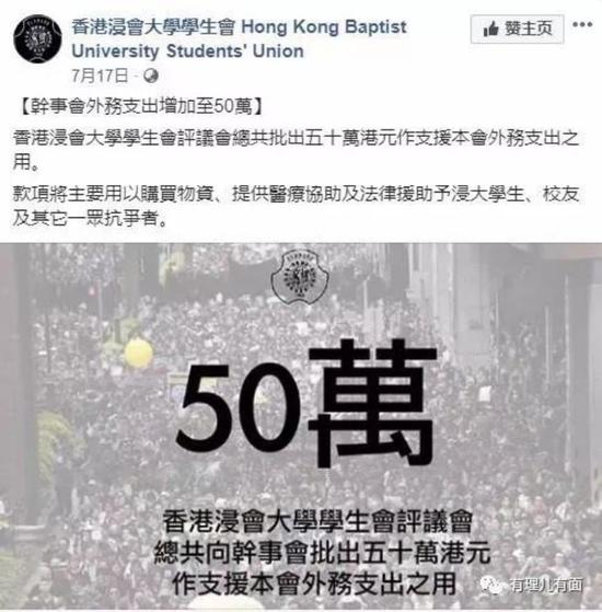 这些学校中,以香港浸会大学学生会、香港科技大学学生会、香港城市大学学生会以及香港大学学生会最为突出。据不完全统计,以上四个大学学生会目前就已经投入300多万港币,用以支持暴力活动。
