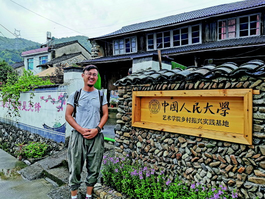 ▲中国人民大学艺术学院副教授丛志强在葛家村,因为他的公益贡献,让人大在葛家村建立了实践基地。记者裘立华摄