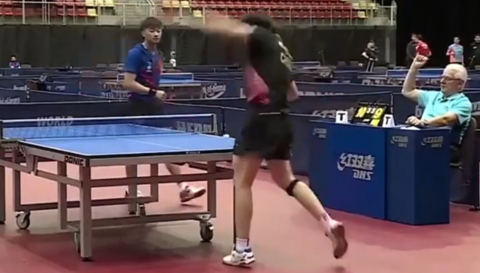 国乒队员比赛中情绪失控 故意摔球拍险些砸到队友