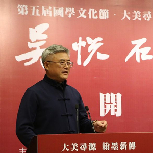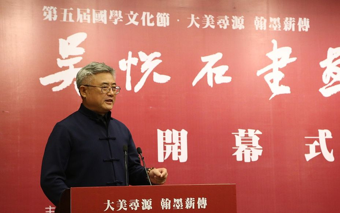 2015年11月,赵长青在北京某书画展开幕式上发言。 图片来源:视觉中国