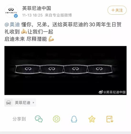 原标题:奥迪花202元,在朋友圈给英菲尼迪打广告?这些看热闹的车企笑了…