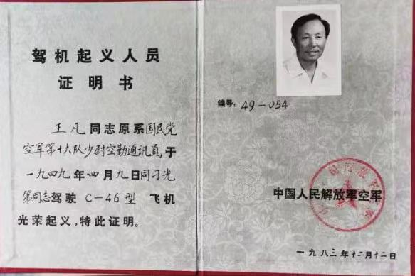 解放前,王凡是国民党空军少尉空勤通讯员。1949年4月9日,他和另一名飞行员抓住稍纵即逝的机会,从上海江湾机场驾机起义。