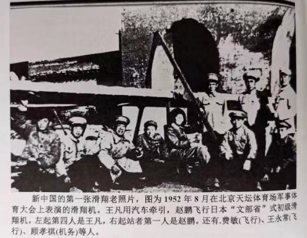 新中国的第一张滑翔老照片,留下了他和队员们的飒爽英姿。1952年,北京天坛体育场军事体育大会上,滑翔组组长王凡负责用汽车牵引滑翔机,副组长赵鹏负责飞行。贺龙元帅看了后,也竖起大拇指。