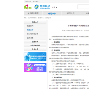 11月14日,中国移动官网发布了携号转网服务实施细则。
