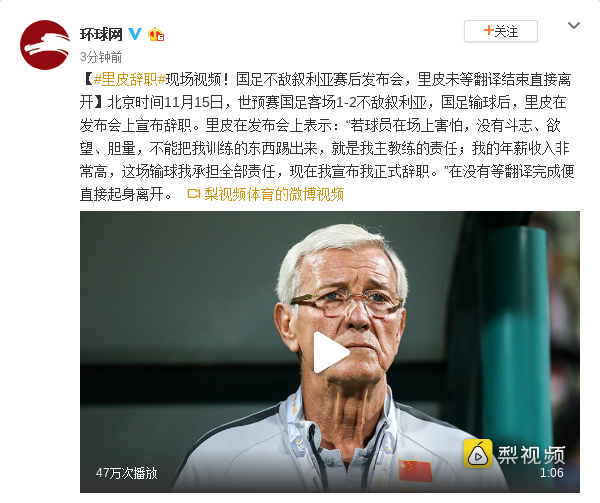 原标题:里皮辞职现场视频!国足不敌叙利亚赛后发布会,里皮未等翻译结束直接离开
