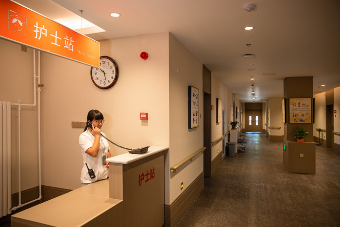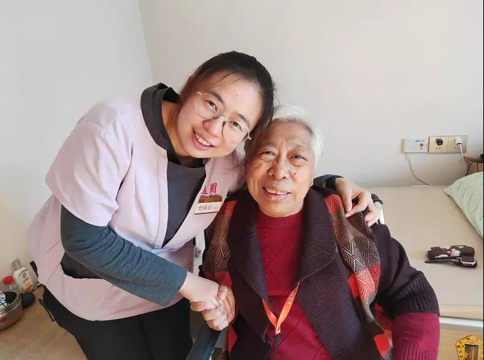住在8号楼2层已经80岁的杨奶奶与“95后”护理人员小乐已然成为朋友。此前由于摔跤伤到了肋骨,杨奶奶日常的打饭、吃药、穿衣、洗澡等琐事便由小乐一手操办。杨奶奶脖子上挂着的移动呼叫器能直接联系到小乐本人,每当小乐的腕表发出声音时,她能第一时间来到杨奶奶身边。即便到了晚上,也会有护理人员值班并进行定时查房。