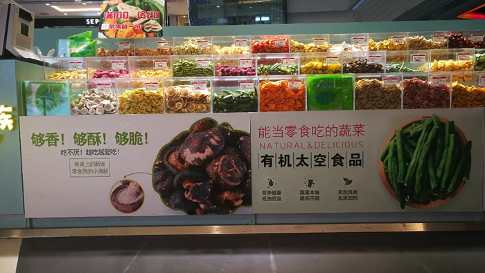 某商场的冻干果蔬宣传语。 摄影 新京报记者 刘欢
